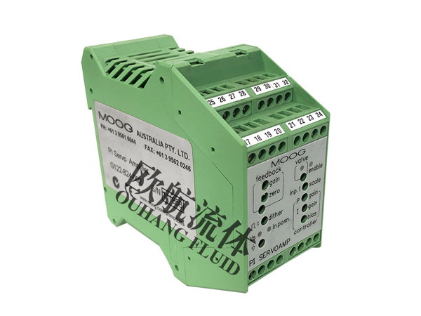 G122-824 P-I伺服放大器用于需要成比例和/或積分放大器的閉環應用。放大器內的選擇開關使比例,積分或兩者都可以被選擇。放大器的許多特性可以通過內部開關來選擇。這使得一個放大器能夠在許多不同的應用中使用。所提供的配置選項是多年設計和調試閉環系統經驗的結果。伺服放大器采用模擬電子設備。它接受三個輸入信號,兩個單端信號和一個差動器。 這些信號被求和以產生一個錯誤信號,然后按比例放大和集成。比例和積分信號交換在一起,并作為電流或電壓輸出,以驅動伺服閥。前面板裝飾罐、LED指示燈和測試點可以快速、方便地設置和幫助排除故障。伺服放大器安裝在一個緊湊的DIN導軌安裝外殼中,需要24V電源。